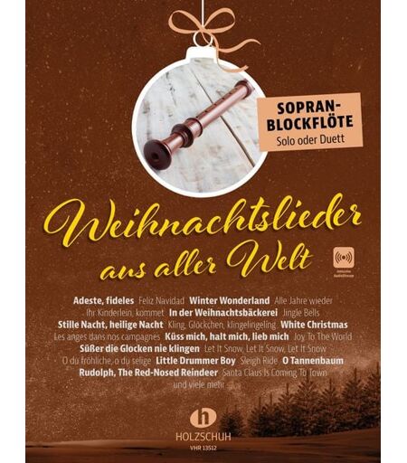 31 Weihnachtslieder bearbeitet für 1-2 Sopranblockflöten in leichtem bis mittlerem Schwierigkeitsgrad. Ideal für den Musikunterricht und das häusliche Musizieren. Neben den traditionellen Weihnachtsliedern sind auch die deutschen Hits „In der Weihnachtsbäckerei“ und „Küss mich, halt mich, lieb mich“ sowie internationale Titel enthalten, wie z. B.: „White Christmas“; „Rudolph; The Red-Nosed Reindeer“; „Feliz Navidad“; „Sleigh Ride“; „Les anges dans nos campagnes“; „Winter Wonderland“; „Santa Claus Is Coming To Town“; „Little Drummer Boy“; „Let It Snow, Let It Snow, Let It Snow“ … Aufnahmen aller Lieder sind als Hörversionen und Play-alongs auf den gängigen Streaming-Plattformen verfügbar (z. B. Spotify). Alle Ausgaben der Serie „Weihnachtslieder aus aller Welt“ sind kompatibel (Ausnahme: Gitarre solo) und bestens geeignet für das Zusammenspiel. Eine Klavierbegleitung (VHR 13519) ist separat erhältlich. Inhalt: Aba heidschi bumbeidschi - Adeste, fideles (Herbei, o ihr Gläubigen) - Alle Jahre wieder - Deck The Halls - Es ist ein Ros‘ entsprungen - Es wird scho glei dumpa - Feliz Navidad - Ihr Kinderlein, kommet - In der Weihnachtsbäckerei - Jingle Bells - Joy To The World - Kling, Glöckchen, klingelingeling - Kommet, ihr Hirten - Küss mich, halt mich, lieb mich - Lasst uns froh und munter sein - Leise rieselt der Schnee - Les anges dans nos campagnes - Let It Snow, Let It Snow, Let It Snow - Little Drummer Boy - Morgen kommt der Weihnachtsmann - O du fröhliche, o du selige - O Little Town Of Bethlehem - O Tannenbaum - Rudolph, The Red-Nosed Reindeer - Santa Claus Is Coming To Town - Sleigh Ride - Stille Nacht, heilige Nacht - Süßer die Glocken nie klingen - We Wish You A Merry Christmas - White Christmas - Winter Wonderland ...