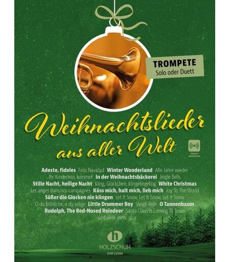 31 Weihnachtslieder bearbeitet für 1-2 Trompeten in leichtem bis mittlerem Schwierigkeitsgrad. Ideal für den Musikunterricht und das häusliche Musizieren. Neben den traditionellen Weihnachtsliedern sind auch die deutschen Hits „In der Weihnachtsbäckerei“ und „Küss mich, halt mich, lieb mich“ sowie internationale Titel enthalten, wie z. B.: „White Christmas“; „Rudolph; The Red-Nosed Reindeer“; „Feliz Navidad“; „Sleigh Ride“; „Les anges dans nos campagnes“; „Winter Wonderland“; „Santa Claus Is Coming To Town“; „Little Drummer Boy“; „Let It Snow, Let It Snow, Let It Snow“ … Aufnahmen aller Lieder sind als Hörversionen und Play-alongs auf den gängigen Streaming-Plattformen verfügbar (z. B. Spotify). Alle Ausgaben der Serie „Weihnachtslieder aus aller Welt“ sind kompatibel (Ausnahme: Gitarre solo) und bestens geeignet für das Zusammenspiel. Eine Klavierbegleitung (VHR 13519) ist separat erhältlich. Inhalt: Aba heidschi bumbeidschi - Adeste, fideles (Herbei, o ihr Gläubigen) - Alle Jahre wieder - Deck The Halls - Es ist ein Ros‘ entsprungen - Es wird scho glei dumpa - Feliz Navidad - Ihr Kinderlein, kommet - In der Weihnachtsbäckerei - Jingle Bells - Joy To The World - Kling, Glöckchen, klingelingeling - Kommet, ihr Hirten - Küss mich, halt mich, lieb mich - Lasst uns froh und munter sein - Leise rieselt der Schnee - Les anges dans nos campagnes - Let It Snow, Let It Snow, Let It Snow - Little Drummer Boy - Morgen kommt der Weihnachtsmann - O du fröhliche, o du selige - O Little Town Of Bethlehem - O Tannenbaum - Rudolph, The Red-Nosed Reindeer - Santa Claus Is Coming To Town - Sleigh Ride - Stille Nacht, heilige Nacht - Süßer die Glocken nie klingen - We Wish You A Merry Christmas - White Christmas - Winter Wonderland ...