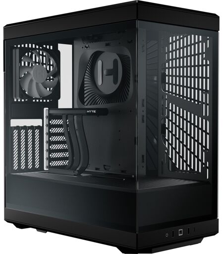 Das HYTE Y40 besitzt eine 2-teilige Panoramaglas-Konstruktion und schafft so die Voraussetzungen für einen völlig ungehinderten Blick auf die Leistung des Systems. Getöntes, gehärtetes Glas verschmilzt nahtlos mit dem schwarzen Innenraum, um die einzelnen Komponenten zu einer sauberen und zusammenhängenden visuellen Einheit zusammenzufügen. Das Y40 bietet eine verbesserte Leistung, Kompatibilität und Ästhetik, welche die exklusive vertikale Grafikkartenarchitektur des Y60 erweitert. Das Y40 unterstützt 4x Full Slots (95 mm) und bietet zusätzlichen Platz für den Luftstrom zwischen der GPU und der Glas-Seitenwand. Ein unter der Netzteilabdeckung versteckter Ansauglüfter sorgt für Frischluft nach oben und verbessert die GPU-Kühlung weiter. Das im Lieferumfang enthaltene PCIE40 4.0 Luxury Riser Cable unterstützt die meisten Grafikkarten und ist farblich auf Ihre Y40-Farbwahl abgestimmt (genau wie beim Y60). Die vertikale Ausrichtung der Grafikkarte schränkt den Benutzer normalerweise auf eine einzige PCI-Express-Karte ein, was eine Erweiterung verhindert... aber nicht mit dem Y40. Das Y40 unterstützt bis zu 6 halbhohe Erweiterungskarten hinter der primären Grafikkarte. Capture-Karten, PCIE-SSDs, Soundkarten und andere PCIE-Erweiterungskarten sind kompatibel, sofern sie im halbhohen Formfaktor erhältlich sind. ...