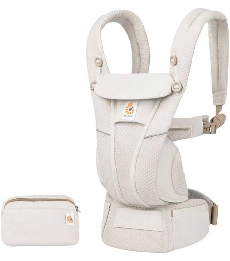 Für ein noch leichteres und angenehmeres Tragegefühl: Das innovative SoftFlex Meshmaterial der Omni Breeze von Ergobaby sorgt für maximale Luftzirkulation. Altersempfehlung: ab Geburt (mind. 3,2 kg bzw. 50,8 cm) Belastbarkeit: bis 20,4 kg Trageweisen: Bauchtrage (Blickrichtung nach innen), Fronttrage (Blickrichtung nach außen), Rückentrage, Hüfttrage Verschluss: einstellbarer Hüftgurt (45,4-145 cm) mit Schnalle, anpassbare Schultergurte (40-110 cm) mit Schnallen an der Taille Gewicht: 1140 g Ausstattung: größenverstellbarer Steg mit farbigem Leitsystem, anpassbare Kopfstütze mit integrierter Kapuze, Seitentaschen am Taillengurt, reflektierende Akzente, gepolsterte Schultergurte mit Über-Kreuz-Option, gepolsterte Lordosenstütze Material: atmungsaktives SoftFlex Meshgewebe (maschinenwaschbar) Sicherheit und Komfort In der Omni Breeze von Ergobaby sind Neugeborene ab einem Gewicht von 3,2 Kilogramm sicher aufgehoben: Die Stegbreite lässt sich mittels Klettlaschen stufenlos verstellen, das Rückenpanel und die Kopfstütze können ebenfalls individuell auf Dein Baby angepasst werden. So wächst die Trage mit Deinem Baby bis ins Kleinkindalter mit und garantiert, dass es in jedem Alter in der ergonomischen Anhock-Spreiz-Haltung bzw. M-Position sitzt. Für noch mehr Sicherheit sind verschieden farbige Linien am Steg angebracht, die je nach Körpergröße des Babys als Guide benutzt werden können. Die anpassbare Kopf- und Nackenstütze stützt den Kopf optimal, wenn die Kleinen schlafen. Sitzen die Kinder mit Blickrichtung nach vorne, kann die Stütze nach außen weggefaltet und mit Knöpfen befestigt werden. Die in der Kopfstütze integrierte Kapuze bietet eine Extraportion Sicht- und Sonnenschutz für die Kleinen. Das atmungsaktive SoftFlex Meshmaterial der Omni Breeze mit seiner rautenförmigen Netzstruktur befindet sich auf der gesamten Trage und sorgt so an allen Stellen für maximale Luftzirkulation und ein angenehmes Tragegefühl für Mama und Papa. Schaumstoffaussparungen im Taillengurt und der gepolsterten Lordosenstütze sorgen für maximale Belüftung. Reflektierende Akzente an der Tragesorgen im Dämmerlicht für mehr Sicherheit. Für noch mehr Komfort verfügt die Trage über eine abnehmbare Gürteltasche und eingearbeitete Seitentaschen am Taillengurt – hier finden Schlüssel, Handy und Co. einen sicheren Platz. Trageweisen und Befestigung Die Omni Breeze lässt sich auf dem Bauch mit Blickrichtung nach innen und außen, auf dem Rücken oder auf der Hüfte tragen. Die weich gepolsterten Schultergurte sind auf dem Rücken kreuzbar (Bauchtrage) oder im Rucksack-Stil (Bauch- und Rückentrage) verwendbar. Das Gurtsystem ist flexibel gestaltet, sodass der Nachwuchs angenehm getragen werden kann. Der Hüftgurt ist gepolstert und kann in der Länge von 45,4 bis 145 Zentimetern verstellt werden. Er verteilt das Gewicht gleichmäßig und sorgt so für einen hohen Tragekomfort. Auch die Schultergurte können in der Länge von 40 bis 110 Zentimeter verstellt und so an den Träger... ...