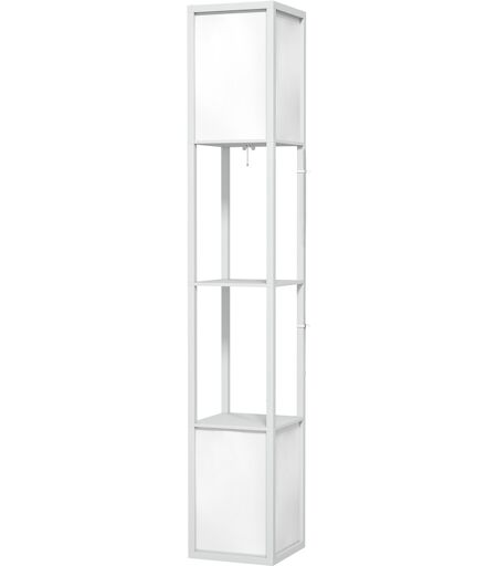 HOMCOM Stehleuchte für das Wohnzimmer, moderne Stehlampe mit Regalen, Stofflampenschirm und doppelte Beleuchtung für Wohnzimmer, Schlafzimmer, Büro, Glühbirne nicht enthalten, Weiß