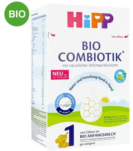 Anwendungsgebiet von Hipp 1 Bio Combiotik PulverHipp 1 Bio Combiotik Pulver kann von Geburt an als alleinige Nahrung oder zum Zufüttern zu Muttermilch verwendet werden.Wirkungsweise von Hipp 1 Bio Combiotik PulverHipp Bio legt großen Wert auf Milchnahrung aus Biologischer Erzeugung die Zutaten unterliegen dabei strengen Qualitätskontrollen. Hipp Pre Combiotik wurde nach dem Vorbild der Muttermilch entwickelt und ist genau an den Ernährungsbedarf von Babys nach der Geburt angepasst. Wertvolle Ballaststoffe dienen den Darmbakterien als Nahrungsgrundlage und fördern den Aufbau einer gesunden Darmflora. Natürliche Milchsäurekulturen, die auch in der Muttermilch nachgewiesen wurden, unterstützen die Verdauungsfunktion. Zusätzlich enthaltene LCP (langkettige, mehrfach ungesättigte Fettsäuren) sind besonders in den ersten Lebensmonaten wichtig, da sie vom Säugling noch nicht ausreichend produziert werden.Wirkstoffe / Inhaltsstoffe / ZutatenMagermilch*, Molkenpulver* teilentmineralisiert, pflanzliche Öle* (Palmöl, Rapsöl*, Sonnenblumenöl*), Stärke*, Ballaststoffe (Galactooligosaccharide aus Lactose), Calciumcarbonat, LCP¹-Öle (Fischöl, pflanzliches Öl aus M. alpina), Kaliumchlorid, L-Tyrosin, Vitamin C, L-Tryptophan, Eisensulfat, Zinksulfat, Vitamin E, Stabilisator Milchsäure, natürliche Milchsäurekultur (Lactobacillus fermentum hereditum®)2, Niacin, Pantothensäure, Kupferlysinkomplex, Vitamin A, Vitamin B1, Vitamin B6, Mangansulfat, Kaliumjodat, Vitamin B2, Natriumselenat, Folsäure, Vitamin K, Biotin, Vitamin D, Vitamin B12.