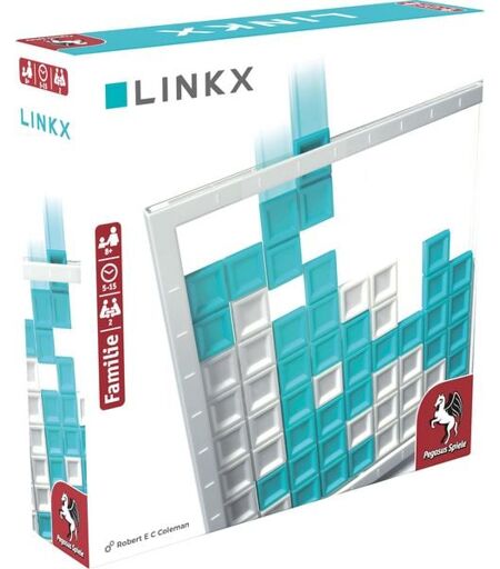 Eine senkrecht-stehende Spielfläche und die Aufgabe, die beiden gegenüberliegenden Seiten der Spielfläche mit Spielsteinen zu verbinden. Eigentlich ganz einfach! Wäre da nicht die gegnerische Person, die alles dafür tun wird, genau das zuerst zu schaffen. Linkx ist ein schnelles taktisches Duell für 2 Personen, bei dem beide versuchen, zwei gegenüberliegende Seiten der Spielfläche mit ihren eigenen Spielsteinen zu verbinden. Beide Spielende verfügen über das identische Spielstein-Set in ihrer Farbe, bestehend aus 14 unterschiedlichen Spielsteinformen. Abwechselnd setzten die die Spielenden einen ihrer Spielsteine ein. Wem es zuerst gelingt, die linke und rechte oder die obere und untere Seite zu verknüpften, gewinnt die Partie. ...