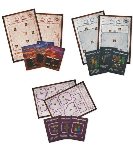 Der Kartograph: Unbekannte Lande bringt den Spielern drei neue Spielplan-Blöcke für Der Kartograph bzw. Der Kartograph - Ära der Helden: Nebblis - Ebene der Flammen, Affril - Ebene des Wissens und Unterstadt - Die Tiefen von Sabek.* Zu jedem doppelseitigen Block gehören neue Regeln, um das Spiel zu variieren sowie drei neue Wertungskarten, die zu dem jeweiligen Spielplan passen. Nebblis: Es wird gemunkelt, dass die Schmieden der alten Zwerge auf magische Weise mit dem großen Vulkan Astmork verbunden waren. Das wollten die königlichen Kartographen selbst sehen. Jetzt stehen sie vor einem Berg, der Flammen in den rauchschwarzen Himmel einer anderen Welt spuckt. Dieser Ort könnte der Schlüssel zu großem Ruhm sein, wenn sie die Flüsse geschmolzenen Gesteins lange genug meiden können, um die Landkarte zu vervollständigen. Affril: Als sich ein Riss öffnete und seltsame Kreaturen auf ihren fledermausartigen Pferden hindurchritten, wussten die Kartographen, dass sie nur eine Chance haben würden, diese Ebene zu kartieren. Sie sprangen durch den Riss und fanden sich auf einem Netzwerk von purpurfarbenen Steinbögen wieder, die aus einem riesigen, grauen Meer aufragten. Mit Waage und Kompass ausgerüstet beginnen die königlichen Kartographen die sicherlich größte Herausforderung ihrer Karriere. Unterstadt: Unter Nalos? Hauptstadt Sabek liegt Unterstadt, ein gewundenes Labyrinth aus Korridoren, Höhlen und Durchgängen, die von lokalen Kriminellen und Abtrünnigen bewohnt werden. Nie wurden die Tiefen von Unterstadt vollständig aufgezeichnet. Der letzte Kartograph, der dieses Unterfangen gewagt hat, ist nie zurückgekehrt. Doch das soll sich nun ändern. Die Königin schickt ihre Kartographen hinab in die Finsternis, um unterirdische Flüsse, Siedlungen und die seltsamen Pilzwälder zu erkunden, die in phosphoreszierenden Höhlen entstanden sind. Viel Glück! Vom 6. bis 23. Oktober 2020 läuft die Kickstarter-Kampagne für die englische Version von Der Kartograph - Ära der Helden und die Landkarten-Erweiterungen (Map Packs). Die Auslieferung soll im Sommer 2021 erfolgen. Die drei Landkarten-Erweiterungen (Map Packs) werden auf Deutsch gebündelt in einem einzelnen Set bereits kurz nach der Kickstarter-Auslieferung veröffentlicht. *Vorläufige Titel. Änderungen vorbehalten. ...