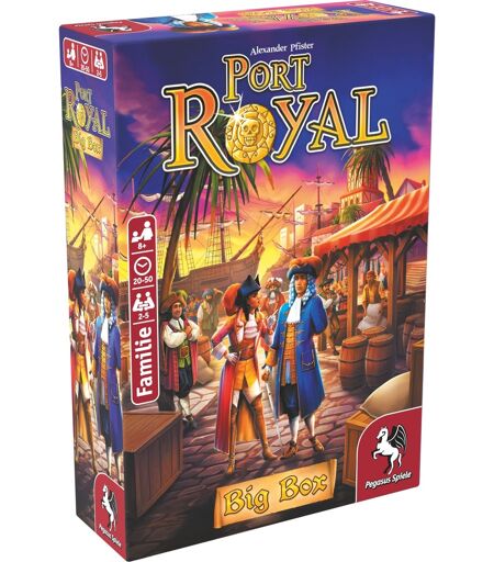 Die See ruft, Kapitäne! Mit der "Port Royal Big Box" entführt euch das preisgekrönte Push-Your-Luck-Spiel von Alexander Pfister in das goldene Zeitalter der Piraterie. Mit neuem Glanz und komplett überarbeiteten Illustrationen ist dies das ultimative Komplettpaket für alle Strategen und Glücksritter. Setzt Segel in den karibischen Gewässern voller Reichtümer und Gefahren. Baut euch eine furchtlose Crew auf, entscheidet, wann ihr euer Glück herausfordert und wann Vorsicht geboten ist, um nicht das Ergebnis eurer Kühnheit zu verlieren. Jeder Zug zählt, denn nur die Mutigsten werden in der Lage sein, dem Ruf des Königs nach Abenteurern zu folgen und ihre Macht zu festigen. Dank leicht verständlicher Regeln stecht ihr sofort in See, allein oder mit eurer Mannschaft. Di in diesem Set enthaltenen Erweiterungen bieten neben dem bewährten Wettstreitmodus auch kooperative und Solo-Spielerfahrungen sowie eine epische Kampagne. Die "Port Royal Big Box" enthält das Basisspiel "Port Royal", die Erweiterungen "Ein Auftrag geht noch ..." und "Das Abenteuer beginnt ...", das Reisespiel "Port Royal - Unterwegs!" und die exklusive Promokarte "Der Spieler". Hisst die Segel, hisst die neuen Farben von Port Royal und lasst eure Abenteuer beginnen! ...