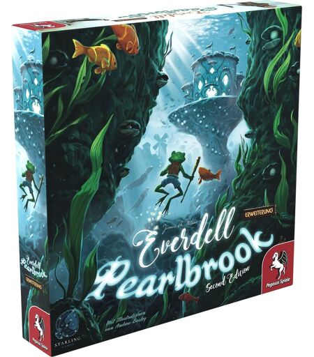 "Everdell: Pearlbrook 2. Edition" erweitert den Zauber von Everdell um eine funkelnde Wasserwelt. Schicke deine Botschafterfrösche zum Perlen Sammeln entlang des schimmernden Pearlbrook-Flusses. Mit diesen Perlenschätzen errichtest Du neue Wunder und verzierst deine Stadt. Diese Edition bringt nicht nur einen neuen Fluss-Spielplan, sondern auch unbekannte Wasserwesen, neue Bauwerke und Flusskarten ins Spiel. Die zweite Auflage bereichert das Spielerlebnis zusätzlich mit Perlen aus Kunststoff, spektakulären 3D-Wundern, 14 frischen Karten und drei neuen Völkern: Axolotl, Schnabeltiere und Stare. "Everdell: Pearlbrook 2. Edition" führt dich tiefer in die reiche Welt von Everdell und lässt deine Fantasie unter der Oberfläche zu neuen Ufern aufbrechen. ...