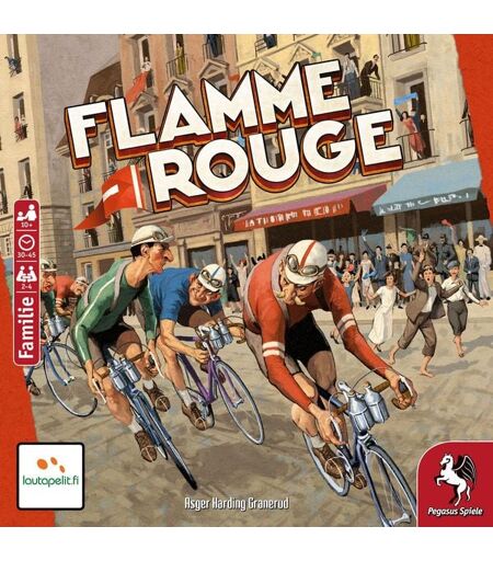 Flamme Rouge ist ein schnelles, taktisches Fahrrad-Rennspiel, in dem die Spieler je ein Team aus zwei Personen steuern: dem Rouleur und dem Sprinteur. Das Spielziel ist es, als erster mit einem der beiden Fahrer die Ziellinie zu überqueren. Wenn mehr als ein Fahrer in derselben Runde die Linie passieren, gewinnt derjenige, der am weitesten darüber hinaus kommt. Spieler bewegen ihre Fahrer vorwärts indem sie Zahlenkarten ziehen und ausspielen, die zeigen, wie weit die Radler sich bewegen. ...