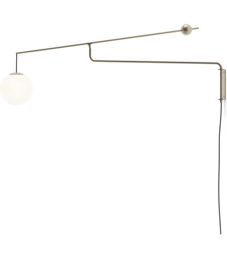 Die außergewöhnliche Luceplan Malamata Wandleuchte besteht aus einer zweigliedrigen Stahlstruktur, die sich aus beweglichen schmalen Gelenkarmen zusammensetzt. Der obere Arm hält am Ende den kugelförmigen Schirm, der aus mundgeblasenem weißem Opalglas besteht und das Licht der einzu setzenden Lichtquelle gleichmäßig und blendfrei in alle Richtungen verbreitet. Auf dem gegenüberliegenden Abschnitt des oberen Arms ist ein rundes Gegengewicht angebracht, das per Druckknopf und Spannfeder gelöst, verschoben und befestigt werden kann. Mithilfe des Gegengewichts lässt sich der Arm unterschiedlich positionieren. Dadurch kann auch die Diffusorhöhe modifiziert und somit den persönlichen Bedürfnissen angepasst werden. Zudem ist der Arm um 360° drehbar. Die Malamata Wandleuchte ist mit einer Kabelzuleitung ausgestattet und benötigt daher keinen extra Wandauslass und verfügt außerdem über einen inte... ...