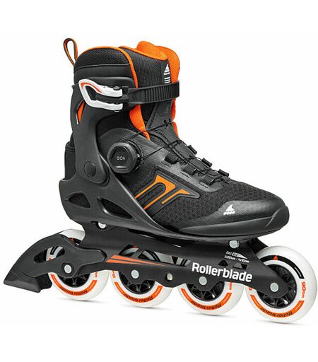 Der Macroblade 90 W BOA® ist mit seinem vorzüglichen Manschettenhalt, dem BOA® Fit System und der Vielseitigkeit, seinem 4x90mm Rollen Set-Up ein sensationelles Produkt, das viel Freude macht. Die komfortable Passform und der gute Halt sorgen für mehr Stabilität und Kontrolle beim Skaten. Das BOA® Fit System bietet durch die clevere Mikroeinstellmöglichkeit eine höchst präzise Passform – durch eine einfache Drehung des Knopfes. Der Footboard Sizer deckt zwei Größen ab. Durch ihn können Skaterinnen sich ihre Skates optimal in der Passform justieren - indem sie ihn im Liner, unter die Einlegesohle einsetzen. So wird das Volumen des Skates reduziert und die Passform sportiver. Liner und Obermaterial bieten sockenähnlichen gut gepolsterten Komfort. Und die Aluminiumschiene sorgt für eine höhere Kraftübertragung und Langlebigkeit. Sie bietet die Möglichkeit, ein 4x90mm oder 3x100mm Set-Up zu fahren (nicht im Lieferumfang enthalten). Die Bremse ist am Skate montiert. Details: Kugellager: SG9 Verschluss-System: BOA® Performance Fit System, Manschettenschnalle Schiene: 3&4WD Twinblade Alu (max 3x100mm) 280mm/11" Bremse: Standard, vormontiert am Skate Innenschuh: Performance PSI, Footboard Sizer zur individuellen Anpassung der Passform Schale/Obermaterial: Macroblade, Mesh mit BOA Rollen: Rollerblade 90mm/84A Farbbezeichnung: Schwarz/Orange ...