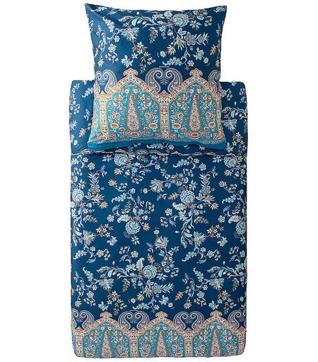 BASSETTI Satin Bettwäsche 2x70x90cm/ 200x200cm INDIAN ROSES Blau dunkelblau B