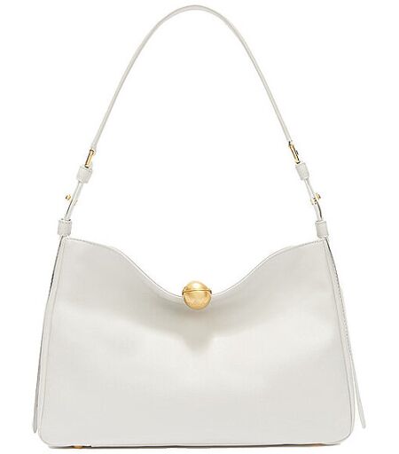 Damen Schultertasche aus Kalbsleder Offene Innentaschen Innentasche mit Reißverschluss Verstellbarer Ledergriff Metallfüße Farbbezeichnung: Marshmallow Maße: ca. 30 x 20 x 7 (w x h x d) Material: Leder ...