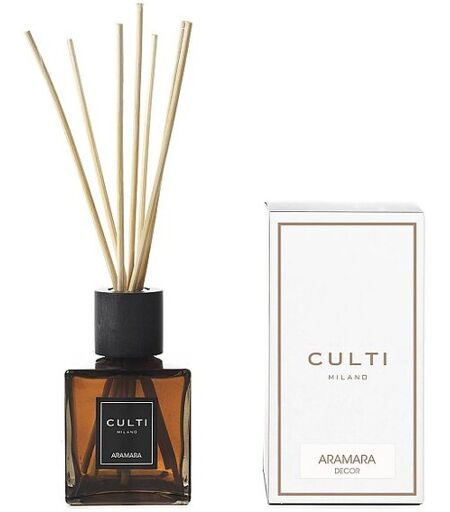 Der Duft Aramara des italienischen Traditionsherstellers Culti Milano gehört zur zitrusartigen Duftfamilie. Ein elegant leichter und sinnlicher Duft nach mediterranen Zitrusfrüchten mit Noten von Bitterorange, Bergamotte und Sandelholz. Der rechteckige Flakon der Decor Diffusoren besteht aus dunkel eingefärbtem Glas und einem edlen Aufsatz aus geschwärztem Ahornholz. Ein Bund Rattanstäbchen ist enthalten. Mit Culti Diffusoren lässt sich der Duft gleichmäßig und dauerhaft im Wohbereich verteilen. Die Intensität lässt sich über die Zahl verwendeter Rattanstäbchen variieren. Der 250 ml Decor Diffuser ist gut für Räume bis 10 m² geeignet. Der Duft hält etwa drei Monate vor. Die Duftrichtung Aramara ist besonders gut für Frühling und Sommer geeignet. ...
