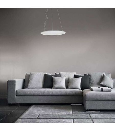 Die Artemide Discovery Pendelleuchte ist Teil der minimalistischen Leuchtenfamilie Discovery von renommierten Stardesigner und Artemide-Gründer Ernesto Gismondi. Ausgeschaltet gibt die unaufdringlich schlichte, geometrische Form der Discovery Leuchte kein Anzeichen ihrer wahren Pracht. Der Clou liegt nämlich in der ausgeklügelten Technik und Qualität des Lichts, das im eingeschalteten Zustand die durchsichtige Mittelfläche in eine bezaubernde, kreisrunde Lichtscheibe verwandelt. So wird eine scheinbar leere Fläche im Ring zu purem Licht, welches jeden Raum mit einer gleichmäßigen, diffusen Beleuchtung bereichert. Der Korpus der Artemide Discovery Pendelleuchte besteht aus einem leichten Aluminiumring, während die innere Kreisfläche des Rings aus transparentem PMMA besteht. Auch bei dieser Leuchte wird das technische Know-How und die meisterhafte Lichtkenntnis von Artemide zur Schau geste... ...