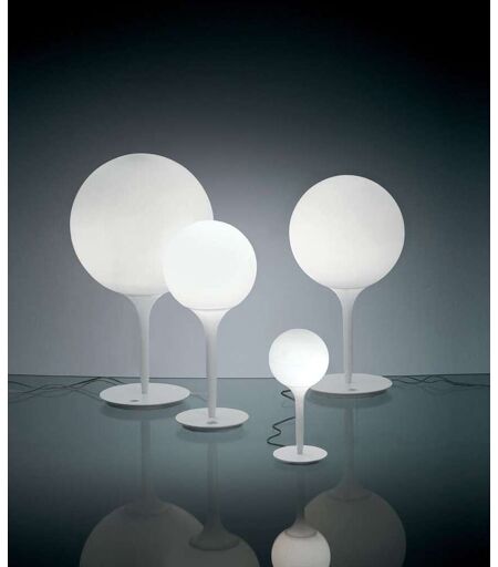 Die Castore Tischleuchte von Artemide ist ein Teil der Castore-Kollektion und gewann 2004 den red dot design award. Michele de Lucchi und Huub Ubbens haben die anmutige Tischleuchte 2003 für den italiensichen Leuchtenhersteller Artemide entworfen. Die leuchtende Kugel sorgt für eine diffuse Lichtverteilung. Der Leuchtkörper der Artemide Castore Tavolo besteht aus mundgeblasenem Glas. Durch die kugelige Form wird das diffuse Licht angenehm in den Raum gestreut. Unterstrichen wird der Leuchtkörper von einem leuchtenden Stab, der in den Fuß übergeht. Dadurch wird ein sanfter Übergang vom strack leuchtenden Schirm zum Schattenbereich der Castore Tavolo geschaffen. Der Stab besteht aus thermo-plastischem Harz. Der Fuß hingegen wird aus Zamak gefertigt. Die Tischleuchte ist in vier Größen erhältlich. Bis auf die kleinste Ausführung, welche einen Durchmesser von 14cm besitzt, besitzt die Artem... ...