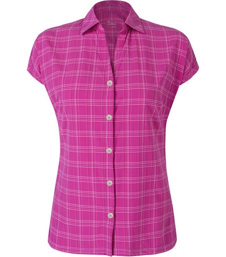 Kurzarm-Damenhemd Superleichtes 4-Wege-Stretch-Nylongewebe Mitte vorne mit Knöpfen Geformter Saum Ideales Kleidungsstück bei vielen Outdoor- und Freizeitaktivitäten ...