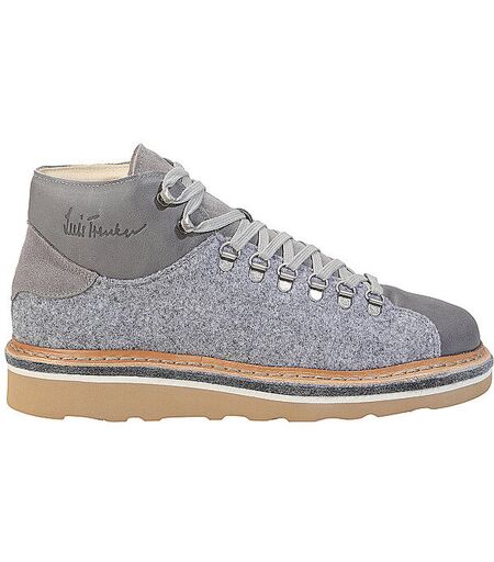 Dieser handgefertigte Sneaker reicht bis über den Knöchel und besticht durch einen außergewöhnlichen Materialmix aus Nappaleder, Wildleder und Wollfilz. Die rahmengenähte Machart und die robuste Vibramsohle sind seine Markenzeichen. Höhe: Bis über den Knöchel Schnürung: Klassische Schnürung mit metallischen Ösen Sohle: Robuste Vibramsohle Innensohle: Atmungsaktive Kork-Einlegesohle Besonderheiten: Körper aus Wollfilz, Quartier und Vorderkappe aus Nappaleder, Hinterkappe und Zunge aus Wildleder mit geprägtem Luis Trenker Logo, rahmengenähte Machart, in traditioneller Manufaktur in Italien von Hand gefertigt Farbbezeichnung: Grau ...