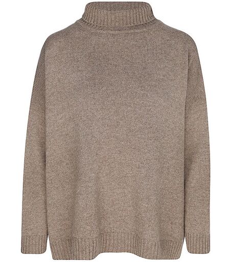 Klassischer Damen Pullover aus reiner Schurwolle Gerippter Stehkragen Langarm Gerippte Saum- und Ärmelenden Gerade Passform Unifarben Farbbezeichnung: Hazelnut Material: 100% Schurwolle ...