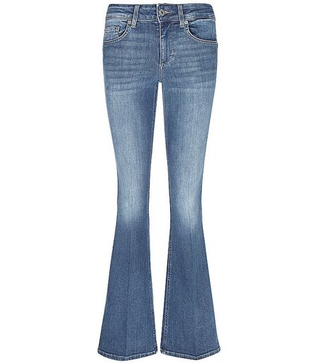 Damen Jeans aus Denim mit Stretch-Anteil Ausgeblichener Effekt Tragefalten Logo-Patch hinten Aufgesticktes Logo hinten Ausgestellt Mittlere Taille Verdeckter Knopfverschluss vorne Gürtelschlaufen Five-Pocket-Design Gerader Saum Farbbezeichnung: Denim Blue Material: 98% Baumwolle 2% Elasthan ...