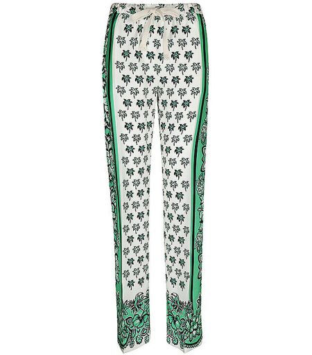 Damen Hose aus reiner Seide Luftige Twill-Qualität Elastischer Bund mit Tunnelzug und Bindeband Seitliche Eingrifftaschen Gesäßleistentaschen Langes, lockeres Bein Dekorativer Palmen-Print mit seitlichen Streifen sorgen für ein Urlaubs-Feeling Farbbezeichnung: Latte Print Material: 100% Seide Taschenfutter: 100% Baumwolle ...