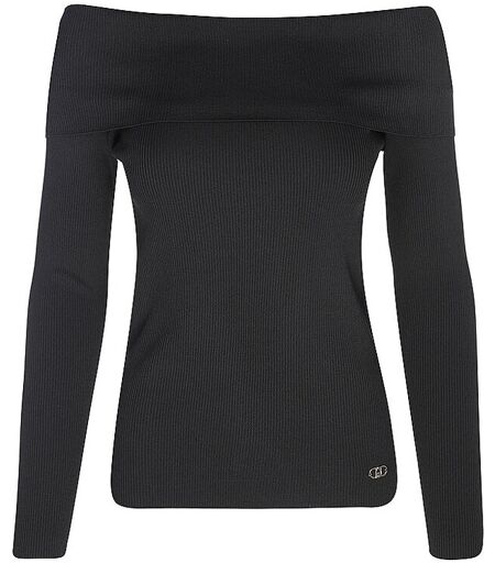 Damen Langarmshirt aus Viskose-Stretch In Rippstrick-Optik Bandeau-Ausschnitt Langarm Schmal geschnitten Logo Emblem aus Metall über dem Saum Unifarben Farbbezeichnung: Nero Material: 63% Viskose, 37% Polyamid ...