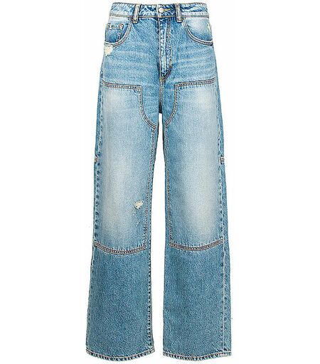 Modische Damen Jeans aus Baumwolle Mittlere Bundhöhe Weites Bein 5-Pocket-Style Gesäßtaschen Knieaufsätze Helle Waschung Unifarben Farbbezeichnung: Blue Material: 100% Baumwolle ...