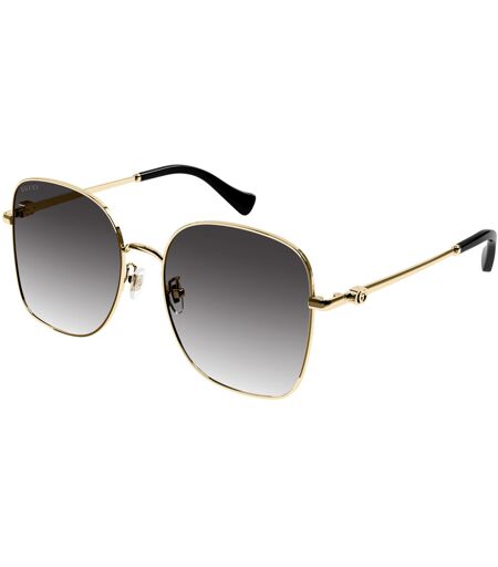 Die Gucci Sonnenbrille verleiht Ihnen eine Ausstrahlung, bei der die Nacht zum Tag wird. Der Rahmen in der Farbe Gold ist zeitlos und passt zu jeder Hautfarbe und Modestil. Die Gläser sind in einem Grau Farbton gehalten, der blendendes Licht reduziert und das Farbempfinden verbessert. Der Farbverlauf der Gläser ist nicht nur trendy, sondern auch praktisch für Autofahrten, da er eine klare Sicht auf die Straße ermöglicht und den hellen Himmel nicht blendet. Glasfarbe: grau Rahmenfarbe: goldfarben Rahmentyp: Vollrand Brillenform: Pilot Rahmenmaterial: Metall UV400 Filter: Ja Maße Glasbreite: 59 Stegbreite: 19 Bügellänge: 145 ...