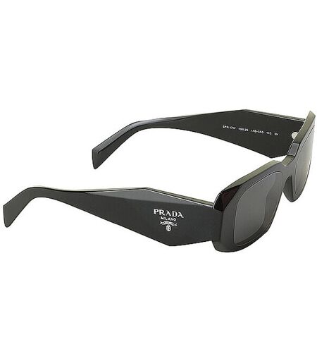 Sonnenbrille in rechteckiger Form Breiter Vollrand aus Kunststoff Logo seitlich Glasbreite in mm: 49 Stegbreite in mm: 20 Bügellänge in mm: 145 Rahmenfarbe: Black Glasfarbe: Dark Grey ...