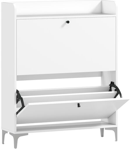 Beseitigen Sie das Durcheinander durch herumliegende Schuhe mit dem eleganten HOMCOM Schuhschrank für den Hauseingang. Die Konstruktion bietet Platz für bis zu 12-16 Paar Schuhe, vor allem dank der verstellbaren und herausnehmbaren Einlegeböden. Die praktische obere Ablage hält verschiedene Gegenstände wie Schlüssel und Geldbeutel ordentlich, sodass der Eingangsbereich aufgeräumt und stets einladend wirkt.Beschreibung:Die 2 Klappfächer des Schuhschranks können 12 bis 16 Paar Schuhe aufnehmen, geeignet bis zur Schuhgröße EU 45Schlanker Schuhschrank mit verstell- und herausnehmbaren Einlegeböden, um höhere oder voluminösere Schuhe zu verstauenEine praktische obere Ablage mit erhöhtem Rand hält Schlüssel und Post stets sicherFlurschrank aus robusten Spanplatten mit MetallbeinenUmkipp-Sicherungsriemen und rutschfeste Füße für zusätzliche Sicherheit und StabilitätMontage erforderlich ...