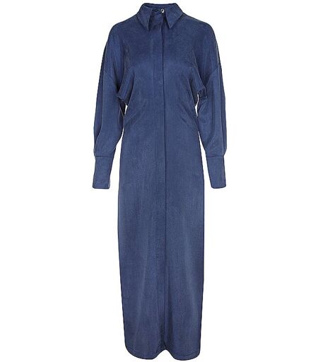 Elegantes Damen Midikleid aus hochwertiger Viskose-Mischung Hemdblusenkragen Schließt mit verdeckter Knopfleiste in der vorderen Mitte Lange Fledermausärmel mit breiten geknöpften Manschetten Taillierte Passform Unifarben Länge: Ca. 131 cm Farbbezeichnung: Ink Blue Material: 61% Viskose, 39% Lyocell ...