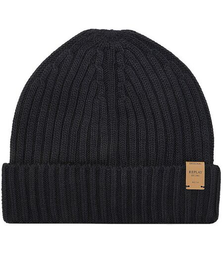 Herren Mütze aus Rippstrick Umschlag mit Logopatch Unifarben Weicher Griff Farbbezeichnung: Blue Material: 100% Polyacryl ...