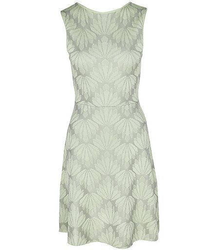 Damen Minikleid aus feiner Viskose-Mischung Zweifarbiger Jacquard-Strick Rundhalsausschnitt Tiefer V-Ausschnitt im Rückenteil Ohne Arm Leicht ausgestellter Rock Leicht taillierte Passform Unifarben Länge: Ca. 93 cm Farbbezeichnung: Lime Material: 76% Viskose, 24% Polyester ...