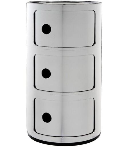 Der Kartell Componibili 3 Elemente Container ist ein schlichter Behälter mit Schiebetüren nach einem Entwurf von Anna Castelli Ferrieri. Das zeitlose Design entstand bereits im Jahr 1969 und ziert seitdem unzählige Flure, Küchen, Wohn- und Arbeitsräume. Als fester Bestandteil der modernen Designgeschichte ist die Kartell Componibili- Kollektion auch Teil der ständigen Ausstellung des Museums of Modern Art und des Centre George Pompidou. Der Kartell Componibili 3 Elemente Container wird aus durchgefärbtem ABS-Kunststoff gefertigt und ist dadurch sowohl stabil als auch pflegeleicht. Die drei Fächer verfügen über eine Schiebetür, die Stauraum für Utensielien und Kleinkram von der Büroklammer bis zum Holzspielzeug. Die verschiedenen Farben des Kartell Componibili 3 Elemente Container setzen gekonnte Akzente oder können passend zum bestehenden Interieur gewählt werden. Im Jahr 2024 w... ...