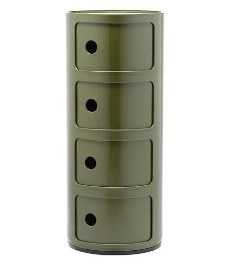 Der Kartell Componibili 4 Elemente Container ist ein wahrer Klassiker unter den Designer-Möbeln. Seit Jahrzehnten begeistert der Entwurf von Anna Castelli Ferrieri, der in verschiedenen Ausführungen und Farben jeden Bereich des Hauses schlicht und funktional organisiert. Der Componibili Container ist längst Bestandteil der ständigen Ausstellung des Museums of Modern Art und des Centre George Pompidou. Der Kartell Componibili 4 Elemente Container wird aus widerstandsfähigem ABS-Kunststoff gefertigt und eignet sich somit für jeden Einsatzbereich vom Bad bis ins Kinderzimmer. Die vier Elemente verfügen über eine Schiebetür, hinter der Krimskrams und Wichtiges ordentlich verstaut verschwinden. Die verschiedenen Farben des Kartell Componibili 4 Elemente Container lassen sich perfekt auf bestehendes Interieur abstimmen. Der Kartell Componibili 4 Elemente Container ist ein praktisches und vie... ...