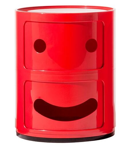 Ein zeitloser Design-Klassiker in einem frechen, zeitgenössichen Gewand: der italienische Designer und Architekt Fabio Novembre schuf mit dem Kartell Componibili Smile Container eine moderne Adaption, eine im wahrsten Wortsinne augenzwinkernde Hommage an den klassischen Kartell Componibili 2 Elemente Container von Anna Castelli Ferrieri für Kartell. Wie die gesamte Componibili-Reihe besteht auch der Kartell Componibili Smile Container aus robustem ABS und verfügt über zwei Aufbewahrungsfächer. In der äußeren Form an sich völlig gleich, fungieren doch hier die Türen gleichzeitig noch als kleines graphisches Kunstwerk: dort, wo sich normalerweise die Grifflöcher befinden, sind jetzt Aussparungen in Form von Augen und einem Mund angebracht, so dass der Kartell Componibili Smile Container im geschlossenen Zustand aussieht wie ein Emoticon. Das leicht ironische Design des Kartell Componibili ... ...