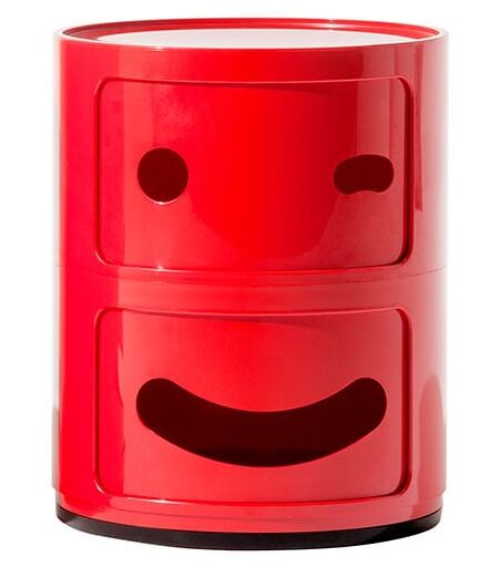 Ein zeitloser Design-Klassiker in einem frechen, zeitgenössichen Gewand: der italienische Designer und Architekt Fabio Novembre schuf mit dem Kartell Componibili Smile Container eine moderne Adaption, eine im wahrsten Wortsinne augenzwinkernde Hommage an den klassischen Kartell Componibili 2 Elemente Container von Anna Castelli Ferrieri für Kartell. Wie die gesamte Componibili-Reihe besteht auch der Kartell Componibili Smile Container aus robustem ABS und verfügt über zwei Aufbewahrungsfächer. In der äußeren Form an sich völlig gleich, fungieren doch hier die Türen gleichzeitig noch als kleines graphisches Kunstwerk: dort, wo sich normalerweise die Grifflöcher befinden, sind jetzt Aussparungen in Form von Augen und einem Mund angebracht, so dass der Kartell Componibili Smile Container im geschlossenen Zustand aussieht wie ein Emoticon. Das leicht ironische Design des Kartell Componibili ... ...
