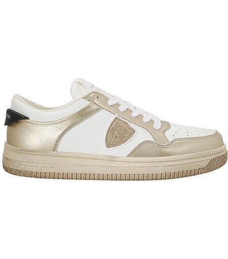 Damen Sneaker aus kompaktem Canvas Details in goldfarbige und Textil 6-fach Schnürung Rutschfeste Profilierung Nachhaltig produziert Farbbezeichnung: Recycle Mixage blan or Material: Leder und Textil Innenmaterial: Leder und Textil Sohle: Synthetik ...