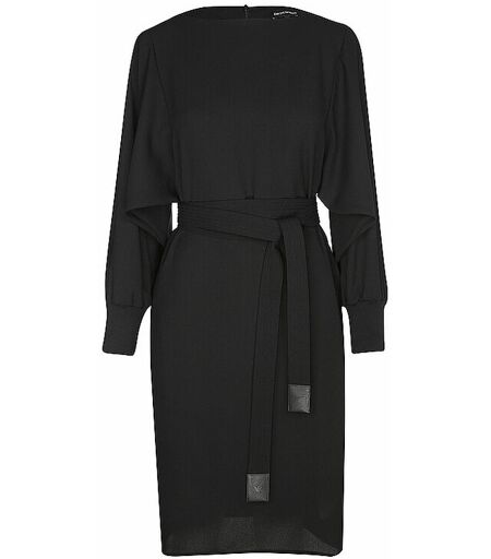 Damen Minikleid aus Krepp U-Boot-Ausschnitt Schließt mit Reißverschluss in der hinteren Mitte Langarm mit breiten Manschetten aus Ripp Abnehmbarer Gürtel mit Logo-Detail aus Leder Knieumspielend Länge: 107 cm Farbbezeichnung: Black Material: 100% Polyester ...
