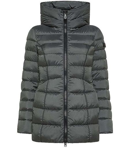 Diese ultraleichte Daunenjacke aus 100 % recyceltem Polyester überzeugt mit weichem Griff, kompakter Struktur und einem matten Finish. Die zertifizierte Füllung aus natürlicher Daune bietet angenehme Wärme und zuverlässigen Schutz, während eine PFC-freie, wasserabweisende Imprägnierung vor leichtem Regen schützt – ganz ohne umweltschädliche Substanzen. Die taillierte Passform mit differenzierter Steppung und einer betonten Naht in der Taille unterstreicht die Silhouette auf dezente, natürliche Weise. Eine feste Kapuze, ein hoher Kragen sowie ein durchgehender Zwei-Wege-Reißverschluss runden das funktionale Design ab. Ein vielseitiges Modell, das speziell für einen dynamischen Lebensstil entworfen wurde – ideal für moderne Kombinationen zwischen Alltag, Freizeit und urbanem Outdoor-Look. Damen Daunensteppjacke Stehkragen mit Kapuze Schließt mit Zwei-Wege-Reißverschluss Seitliche Eingrifftaschen Logo-Patch am linken Ärmel Schmale Passform Unifarben Farbbezeichnung: Verde Edera Material: 100% recycelter Polyester Futter: 100% Polyester Füllung:: 80% Daunen 20% Federn - Fill Power 650 ...