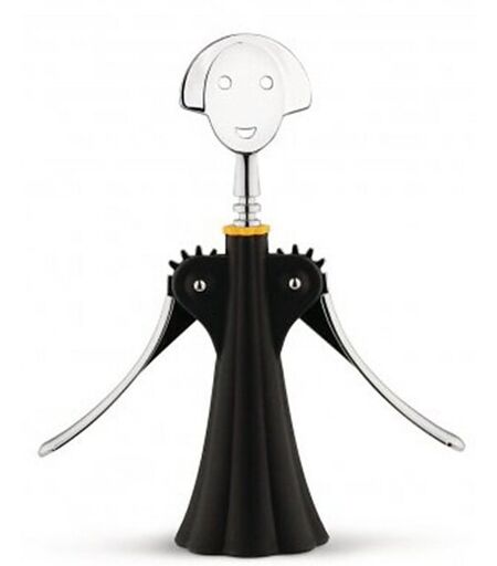 Korkenzieher aus thermoplastischem Harz, schwarz und verchromtem Zamak.Der Korkenzieher Anna G., seit Produktionsbeginn im Jahr 1994 ein Beststeller, ist eine ironische Hommage an eine reale Frau, deren lächelndes Gesicht im Lauf der Jahre zu einer Kultfigur geworden ist und eine ganze Reihe von Objekten für Tisch und Küche aus unterschiedlichen Materialien inspiriert hat. ...
