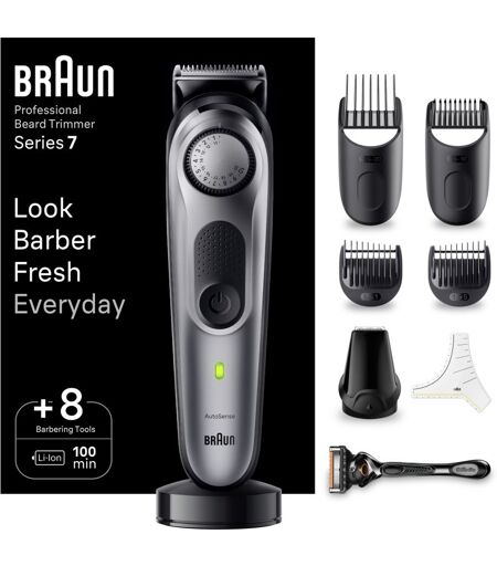 Braun Series 7 BT7420, 1 St., Trimmer für Herren, Das Set beinhaltet: Bartschneider 1 St. Bartkamm 1 St. Haarkamm 1 St. Gillette ProGlide Rasierer 1 St. Ladeständer für Rasierer 1 St. Schablonen für den Bart 1 St. Reinigungsbürste 1 St. Futteral 1 St. ...