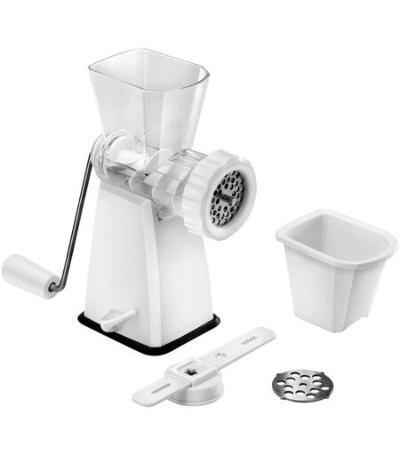 Der Metaltex Tartare Fleischwolf ist ein kleiner Alleskönner, denn er hat zwei verschiedene Einsätze im Gepäck, mit denen Sie unterschiedliche Lebensmittel zerkleinern bzw. formen können. Während der eine Einsatz ideal zum Zerkleinern von Fleisch, Gemüse und Nüssen geeignet ist, können Sie mit dem Gebäckeinsatz Kekse, Spritzgebäck und Nudeln herstellen. Für den sicheren Halt auf glatten Oberflächen sorgen der große Saugfuß und der Sicherheitshebel, mit dem sich der Fleischwolf befestigen lässt. Ideal für Einsteiger und alle anderen, die beim Kochen und Backen gerne neue Gerichte und Rezepte ausprobieren und für die Zubereitung ein preisgünstiges Multifunktionsgerät suchen. ...