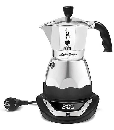 Bialetti Espressokocher elektrisch EASY TIMER 6 Tassen Alu / Schwarz silber B
