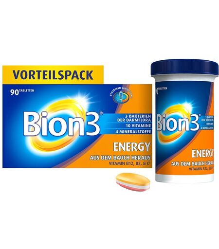 Anwendungsgebiet von Bion3 Energy TablettenBion3 Energy Tabletten sind ein Nahrungsergänzungsmittel mit 3 Tri-Bion® Bakterien der Darmflora, Vitaminen, Mineralstoffen und Ginsengextrakt.