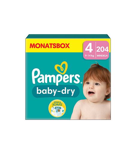 Pampers® Windeln baby-dry™ Monatsbox Größe Gr.4 (9-14 kg) für Babys und Kleinkinder, 204 St.