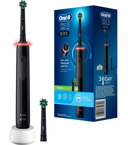 Braun Oral-B Pro 3 3000 CrossAction Black Edition, Elektrische Zahnbürste