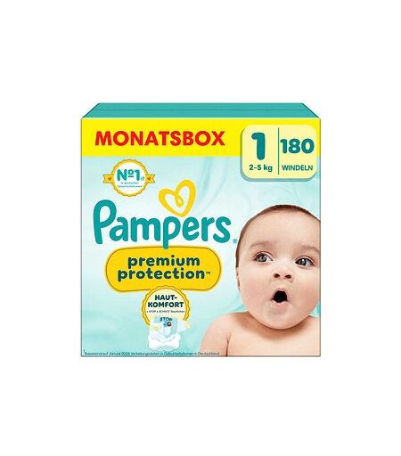 Pampers® Windeln Monatsbox premium protection™ Größe Gr.1 (2-5 kg) für Neugeborene, 180 St.