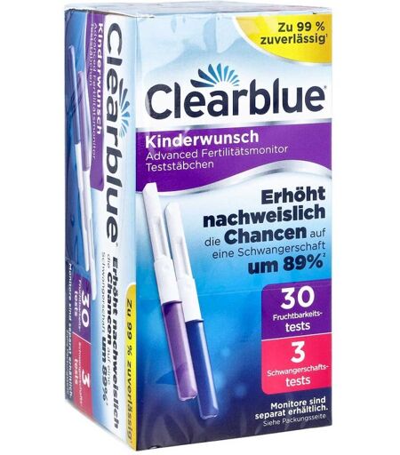Anwendungsgebiet von Clearblue Fertilitätsmonitor Teststäbchen 30+3Die Teststäbchen-Nachfüllpackung für den Clearblue Fertilitätsmonitor Advanced enthält 30 Fruchtbarkeitstests und 3 Schwangerschaftstests, die einzeln verpackt sind. Der Clearblue Fertilitätsmonitor Advanced ist NICHT in diesem Paket enthalten. Die Fruchtbarkeitsteststäbchen aus dieser Packung Clearblue Fertilitätsmonitor Teststäbchen 30+3 können nur mit dem Clearblue Fertilitätsmonitor Advanced (separat erhältlich) oder dem Clearblue Fertilitätsmonitor verwendet werden sie funktionieren nicht mit unseren anderen Clearblue Ovulationstests. Die Schwangerschaftsteststäbchen aus dieser Packung können nur mit dem Clearblue Fertilitätsmonitor Advanced (separat erhältlich) verwendet werden.