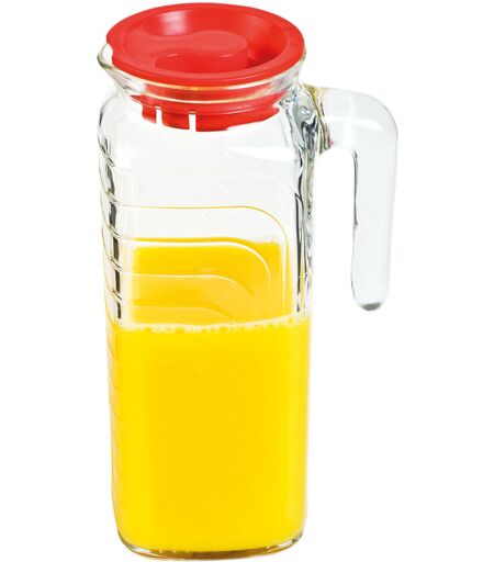 Bormioli Rocco Glas-Krug Gelo mit rotem Deckel; 1200 ml, 8x22.5 cm (ØxH); transparent; rund; 6 Stück / Pack