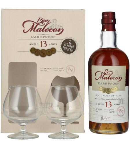 Rum Malecon Añejo 13 Años RARE PROOF 2006 50,5% Vol. 0,7l in Geschenkbox mit 2 Gläsern
