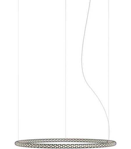Die Rotaliana Squiggle H2 Pendelleuchte ist eine ringförmige Leuchte die von der Decke zu schweben scheint. Die metallene röhrenformige Struktur mit Löchern in Form von unregelmäßigen Sechsecken, verbirgt den im Inneren liegenden LED-Streifen. Die Squiggle Pendelleuchten Kollektion wurde 2019 von Paolo Rizzatto für die italienische Leuchtenmarke Rotaliana entworfen. Als Inspiration diente dem Designer die imposante Neonstruktur aus gebogenen Röhren, die Lucio Fontana 1951 für die IX Triennale von Mailand entwarf, und die ihm aus seiner Kindheit in Erinnerung geblieben war. Squiggle bedeutet auf Deutsch ...
